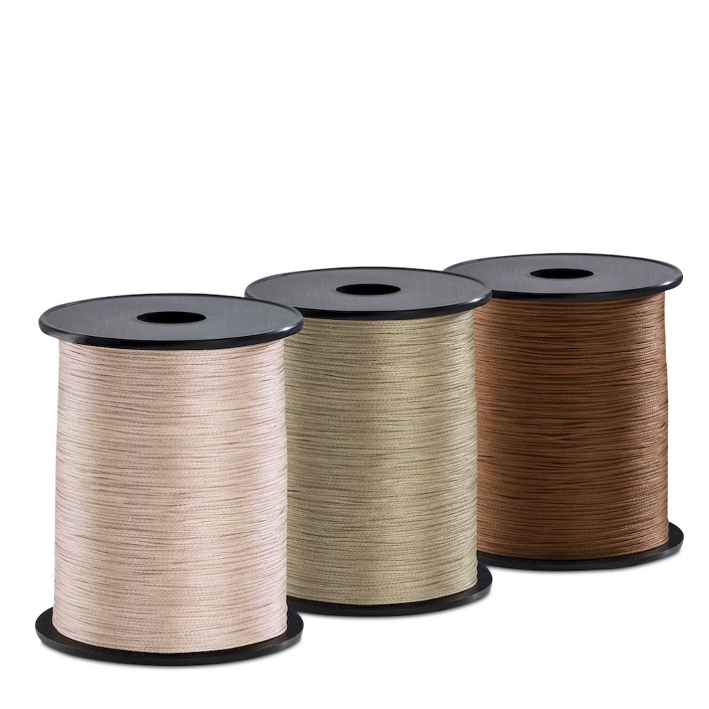 Semiwaxed braid used in all machines to sew mocassins, flat and box soles. The special structure and the calibrated waxing grant a smooth gliding, preventing seam slippage and soiling of machine. The particular make up on flanged reel avoids, with a regular unwinding, technical or aesthetic defects coming from any uptwisting of the braid.